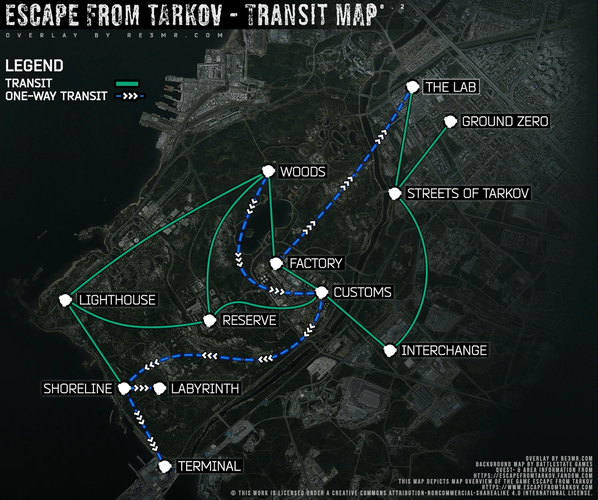 Ground Zero, Streets of Tarkov, The Lab, Woods, Factory, Customs, Reserve, Interchange, Shoreline, Lighthouse